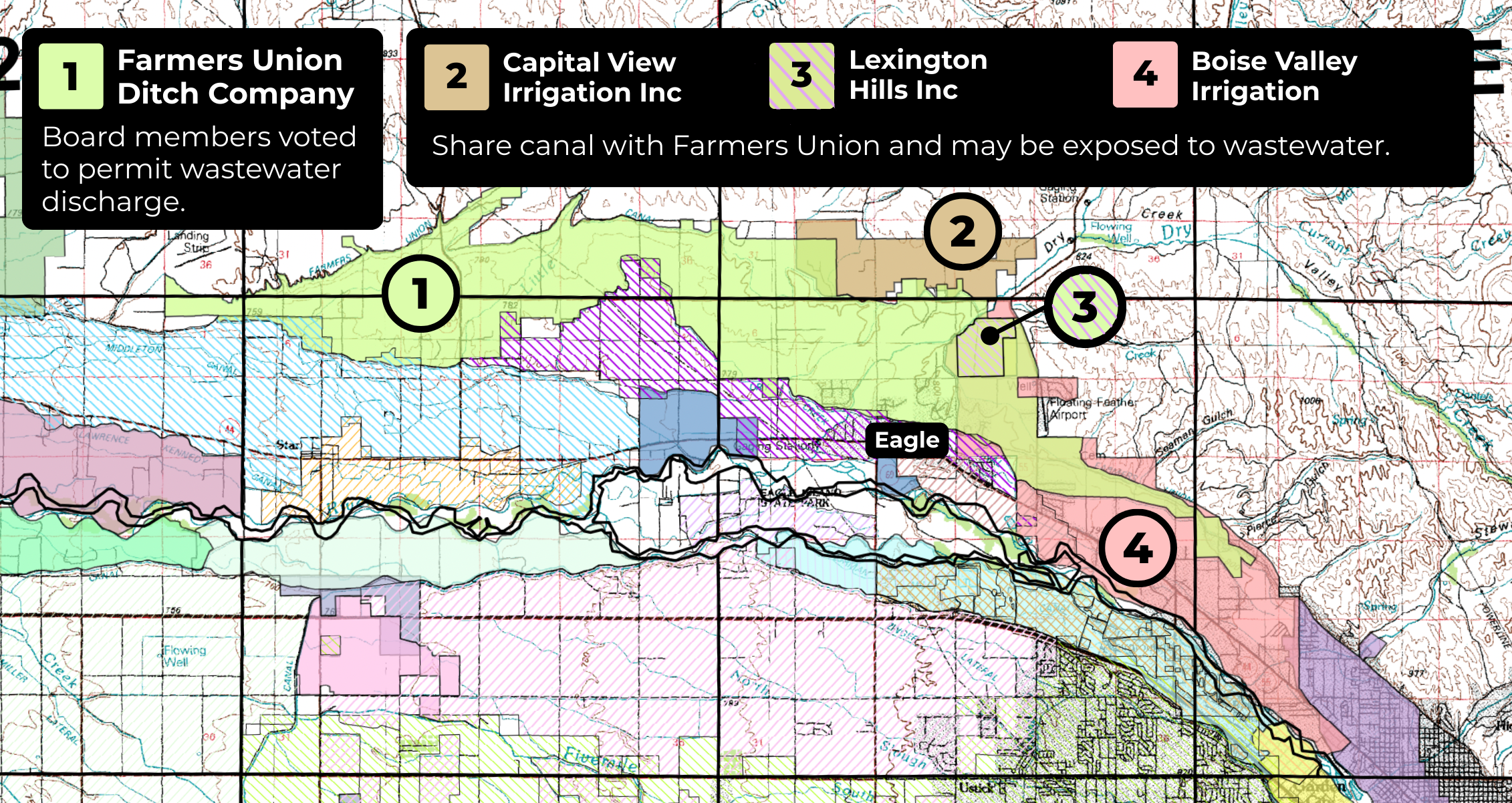 Eagle Sewer District quietly partnered with Farmer’s Union Ditch to begin discharging Class A wastewater into the canal beginning as early as 2027. This canal carries water to over 8,000 acres across Eagle and Star, and is used to water lawns, gardens, schools, parks, crops and recharge our drinking water aquifers.