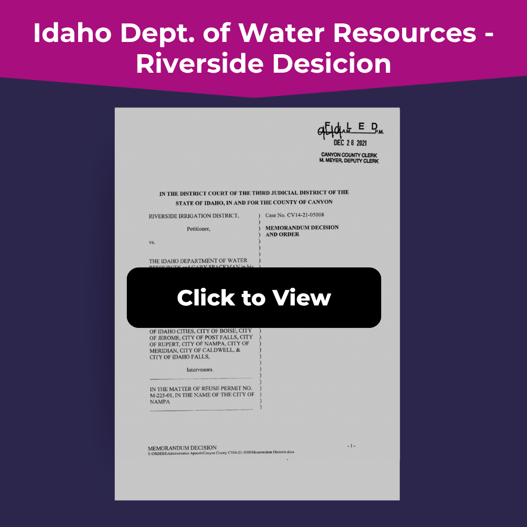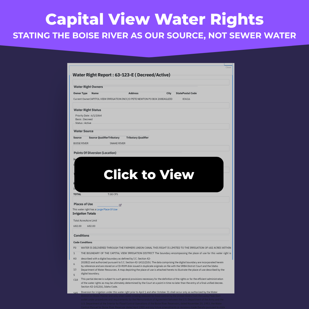 Your water rights documents (Stating the Boise River as our source, not sewer water)